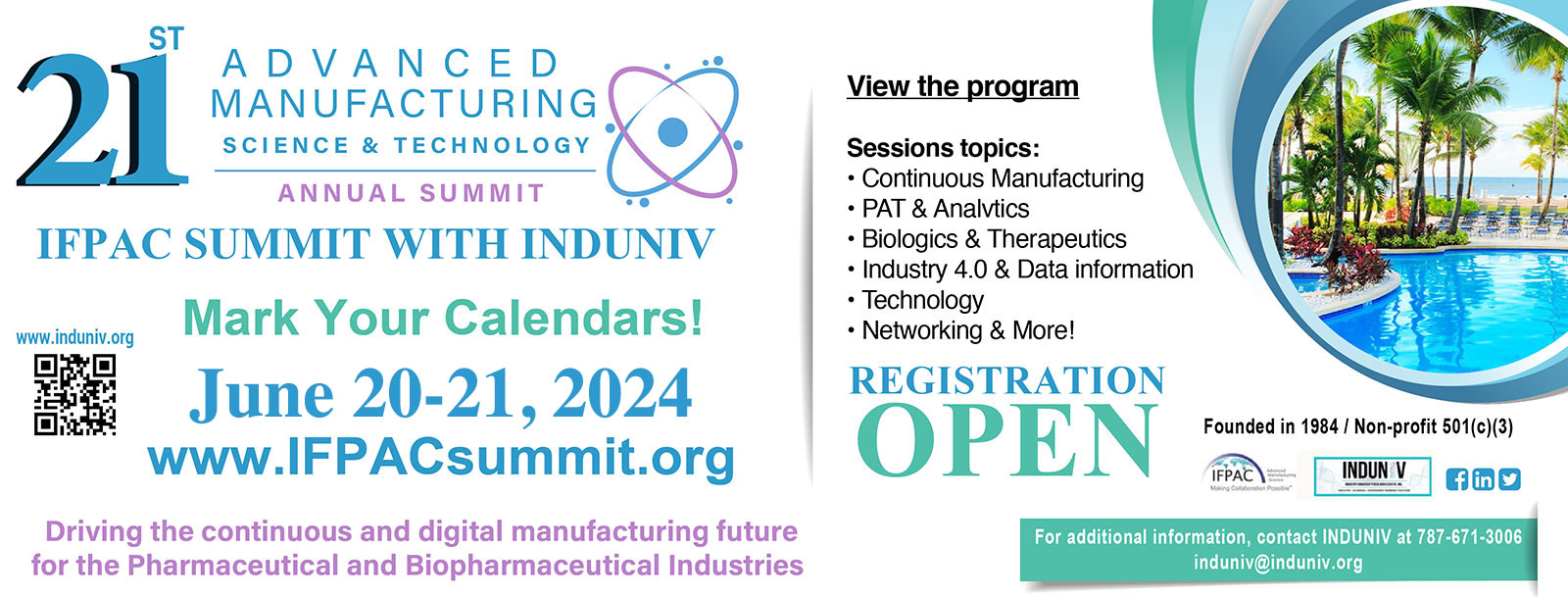 The IFPAC Annual Summit, covering the latest initiatives in Process Analytical Technology (PAT) and the Future of Manufacturing, will be held on June 20-21, 2024. IFPAC and INDUNIV are planning another premier event for professionals in the pharmaceutical sciences and biopharmaceuticals.